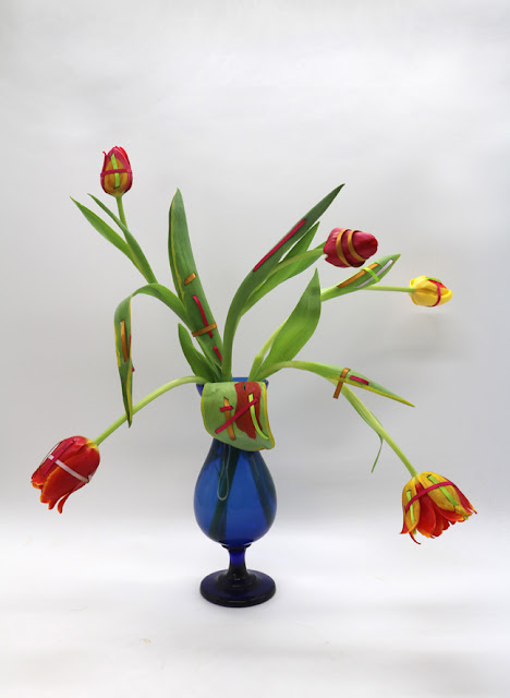 | Arums V Fleurs brodées et enveloppées aux rubans |